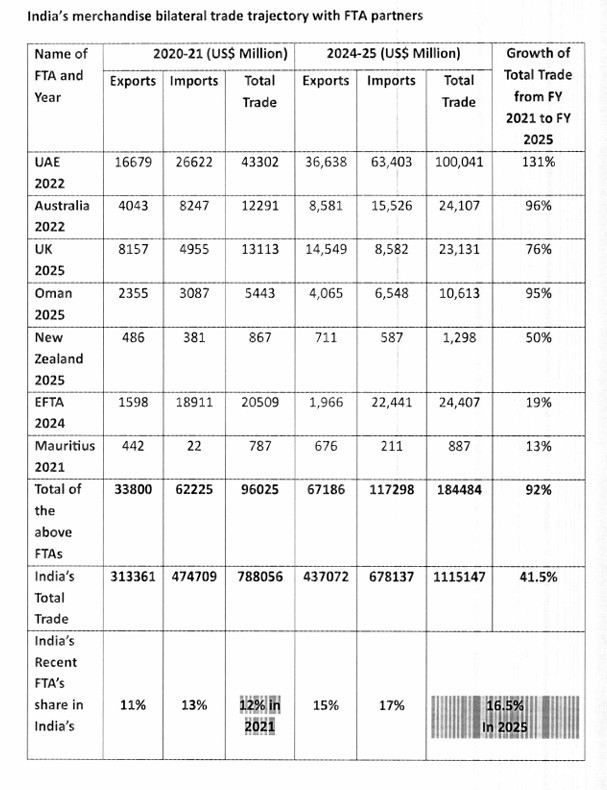 The results are clear: between FY 2020–21 and FY 2024–25, India’s merchandise trade with strategic FTA partners grew by 92%, compared with 41.5% growth in India’s total merchandise trade with the world.